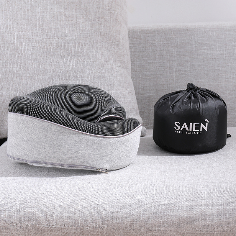 [品牌]:SAIEN賽恩 [産品名稱]:旅行(xíng)頸枕 [産品尺寸]:28x28x14cm [産品型号]:SN-FC583 [枕套材質]:空(kōng)氣棉彈力布 [顔色]:灰、粉、藍(lán)、黑(hēi) [适用(yòng)季節]:春夏秋冬 [産品材質]:氨綸、記憶棉